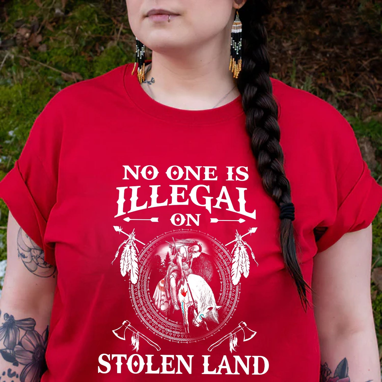 NO ONE IS ILLEGAL ON STOLEN LAND. WE WALK ON NATIVE LAND Style 5 - One Side Unisex T-Shirt/Hoodie/Sweatshirt