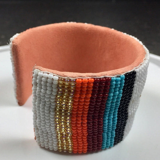Multicolor Medicine Man's Eye Beadwork Beaded Men's Cuff Bracelet Leather 40LDR5, Beaded Cuff Bracelet Wide Size beautifully hand beaded one bead at a time with small size 11/0 Seed Beads. Free Size Bracelet, 3.0 Inch Diameter, Length Of Beaded Part Is 7.0 Inch, Â Back Part Of Bracelet Covered With Natural...