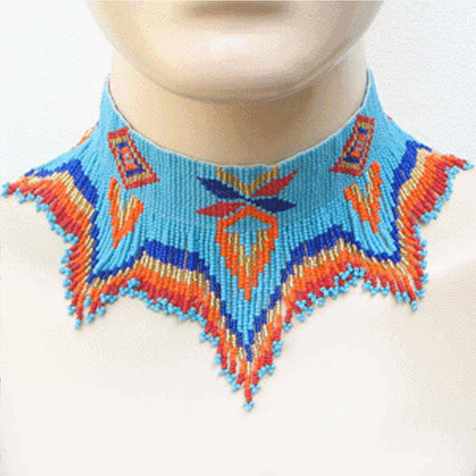Blue Black Red Beaded  Bib Necklace Medicine Man's Eye Beadwork N18/1, Beaded Necklace beautifully hand beaded with Cz Seed Beads, very elegant, another great addition to your collection.Turquoise Blue,Black,Red,Yellow,White Color Cz Seed Beads No 11/0 Size, Lock And Extender Chain Made Of White Metal With 0.925 Sterling Silver Nickel Free Oxidized...