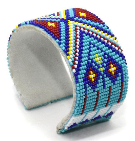 Multi-Color Aztec Pattern Beaded Bracelet beautifully handmade one bead at a time with small size 11/0 Cz Seed Beads.