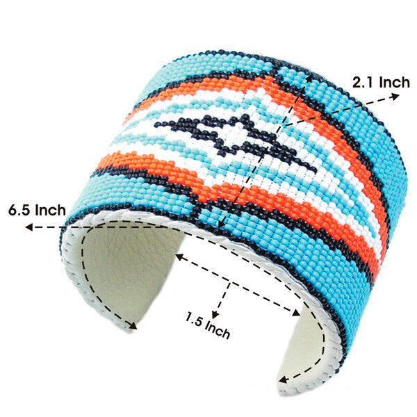 Blue Black Red Seed Beaded Handmade Art Mens Cuff Bracelet Leather WCS