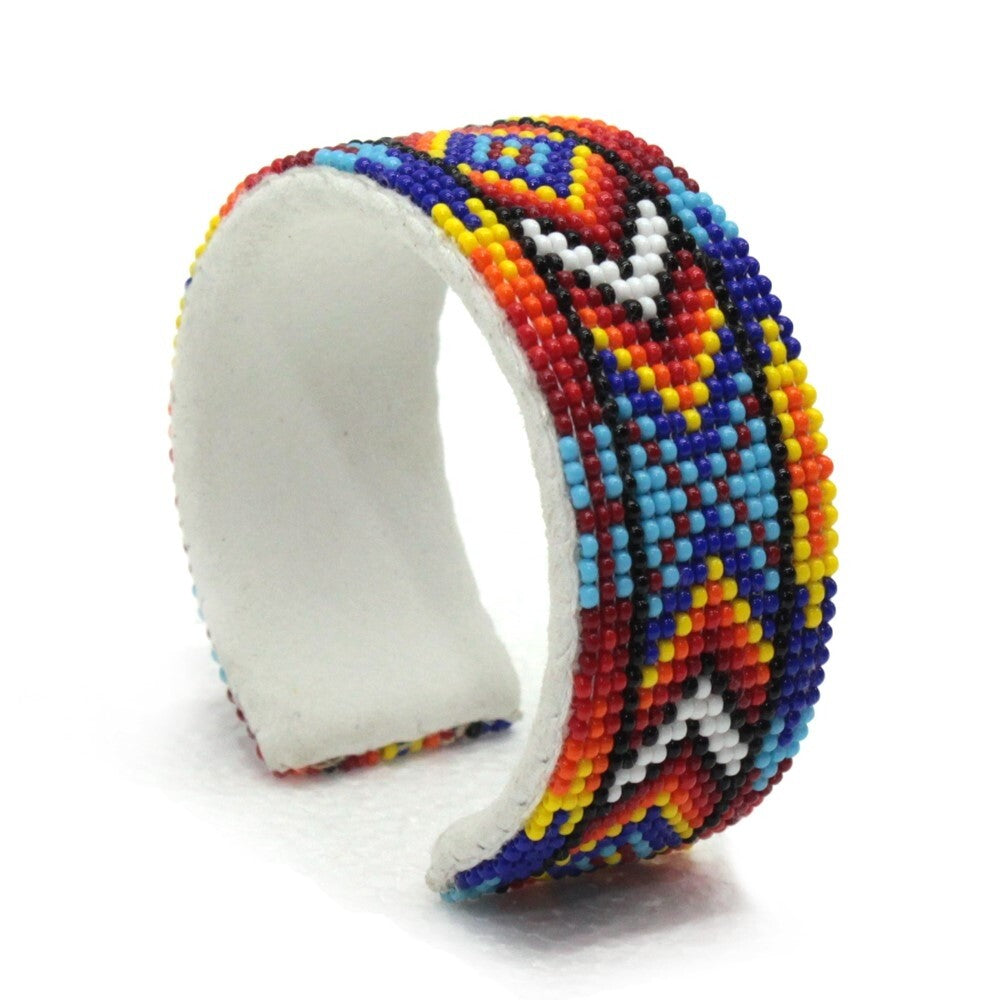 Handmade Beaded Diamond Pattern Multi-Color Leather 1Inch Wide Bracelet WCS