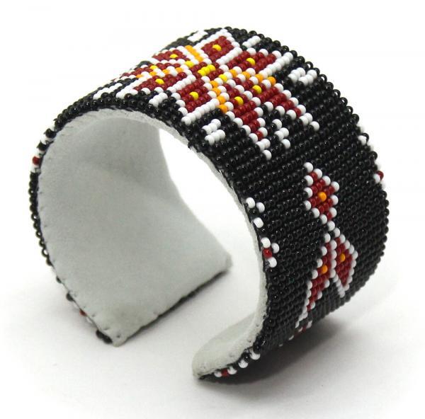 Black Red White handmade beaded Flower Cuff Bracelet WCS