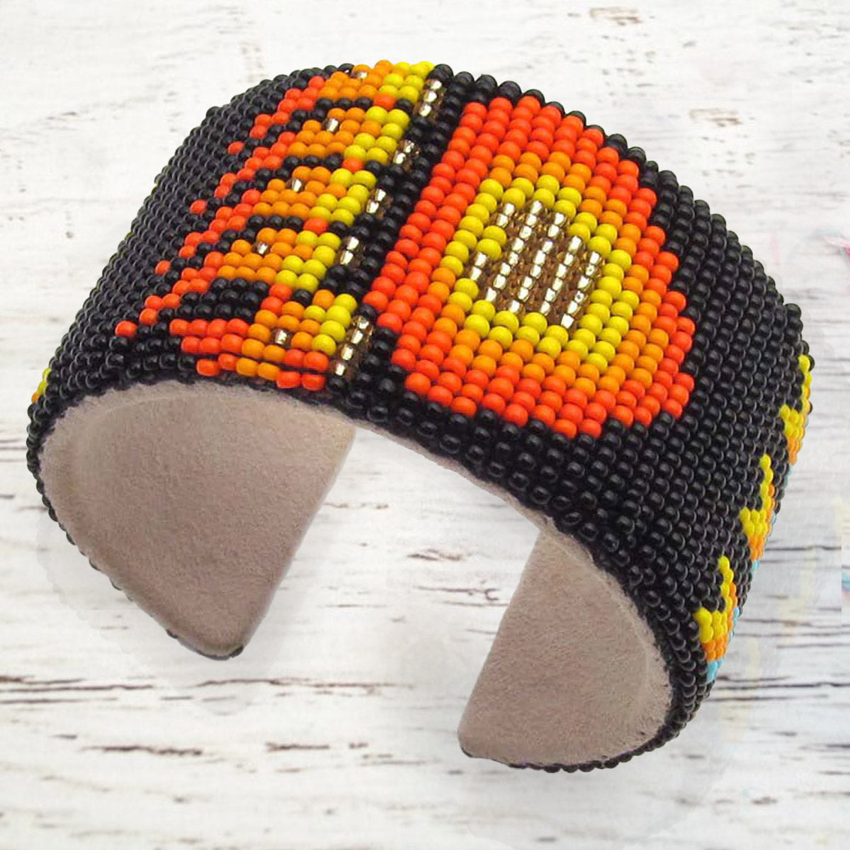 Natural Leather Is Used In The Back Side Of The Bracelet. 11/0 Cz Glass Seed Beads..
