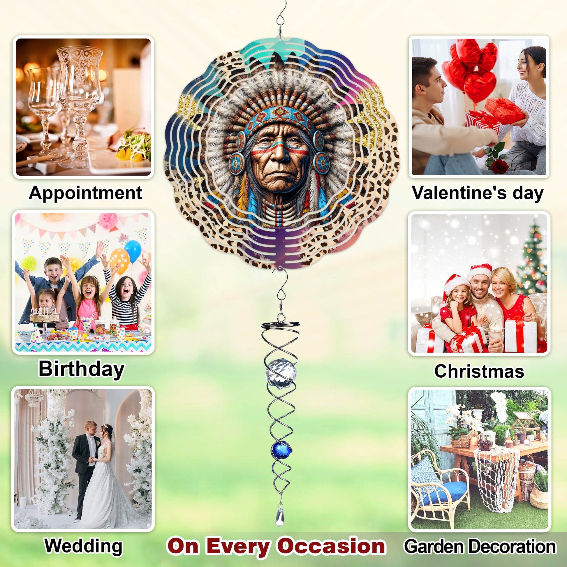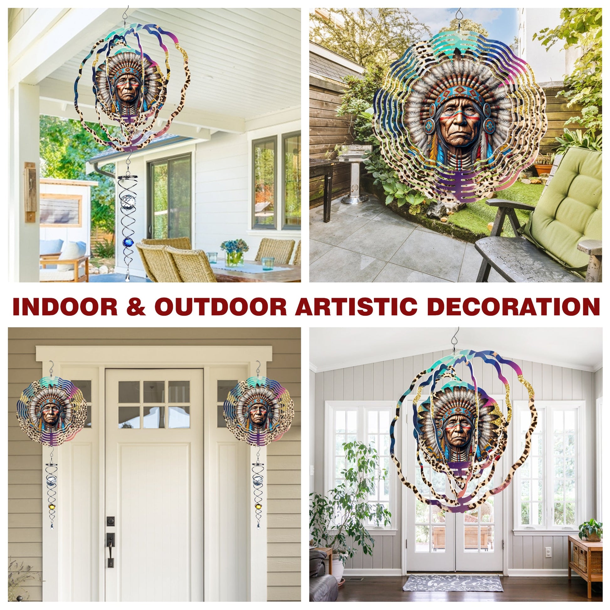 Discover a world of whimsical beauty with wind spinners for your yard and garden. Choose from Headdress Chief Native American wind spinners, Wolf wind spinners, Hummingbirds, and more. Transform your outdoor space with our creative collection. Shop now and let the wind weave its magic!