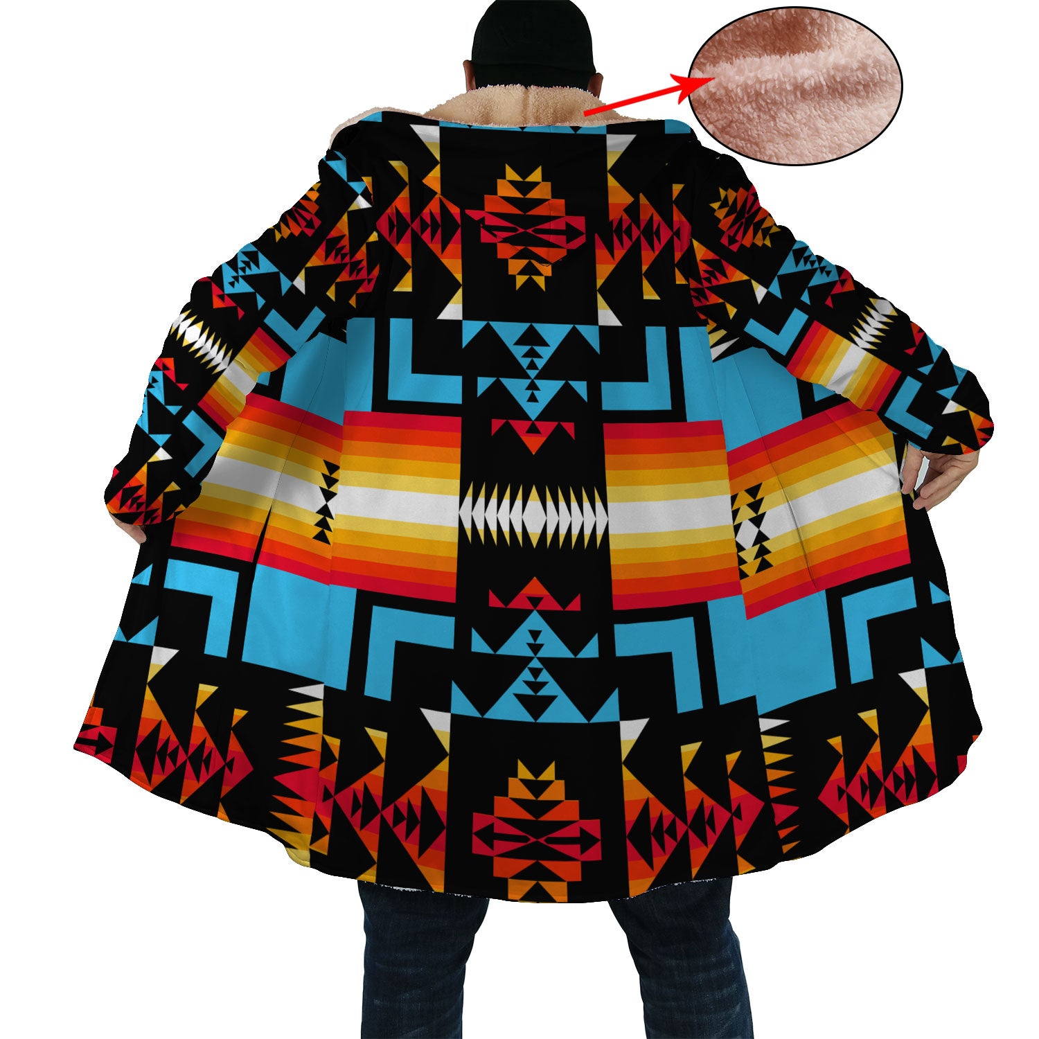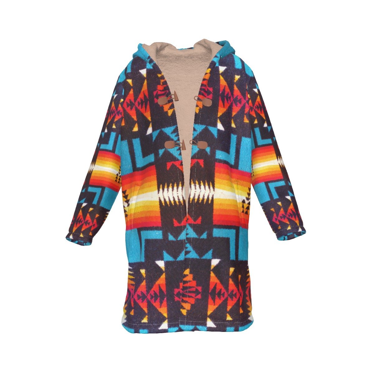 Native American Culture Pattern Horn Button Long Fleece Windbreaker WCS
