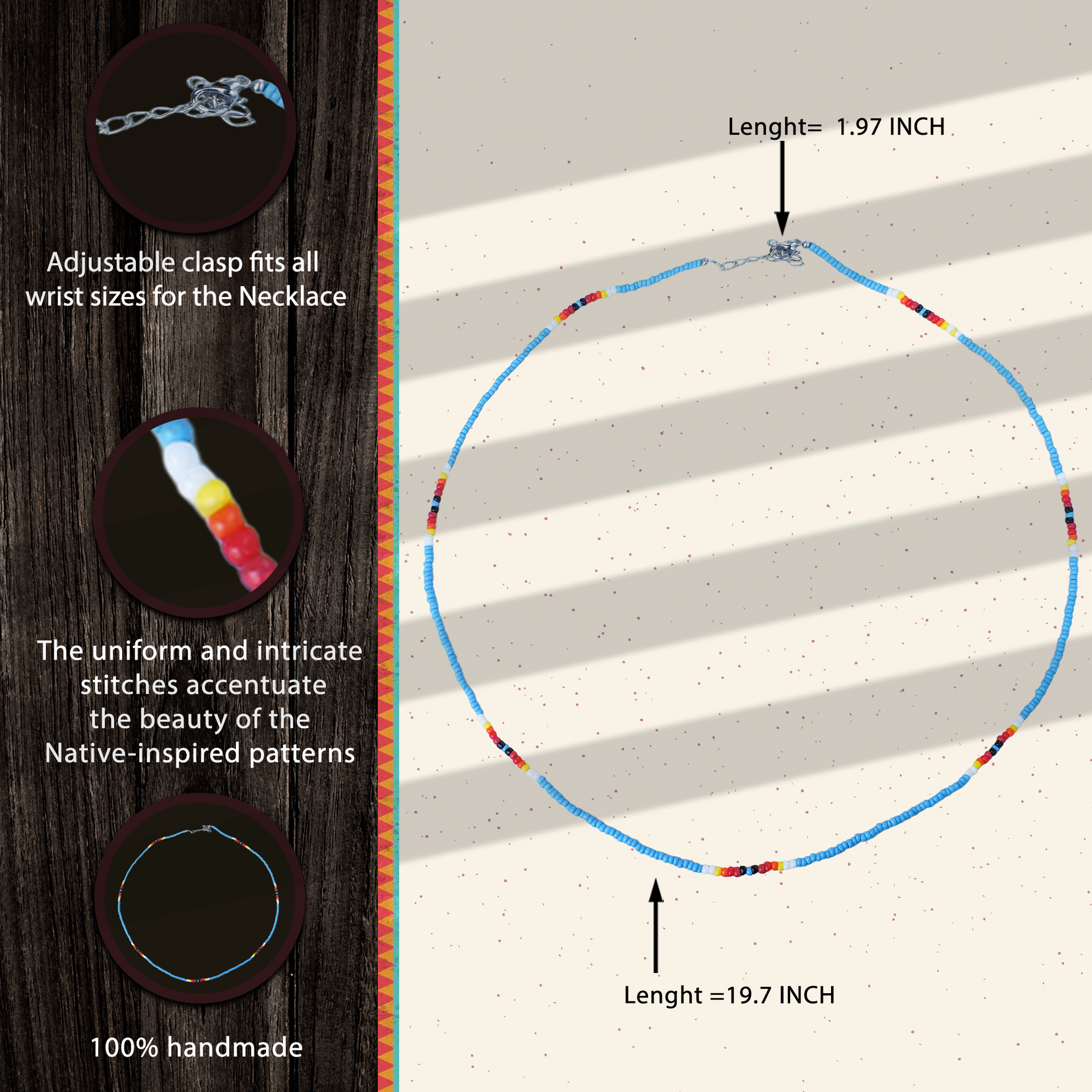 In particular, this necklace can also be combined with many different accessories such as patches, pendants, and more, allowing you to create unique and personalized looks that reflect your own style and appreciation for Native American heritage.