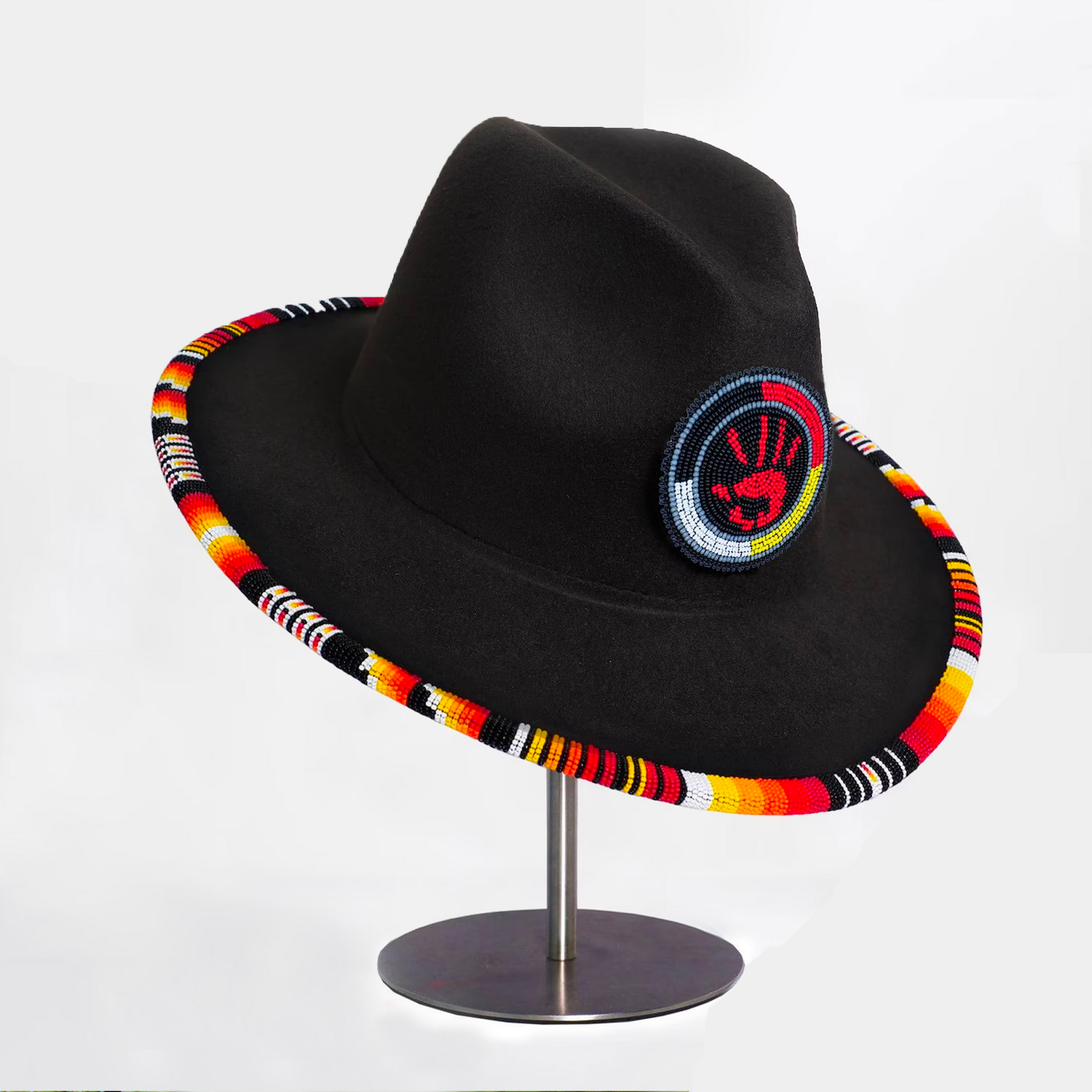 Embark on a journey of culture and style with our Beaded Fedora, an ode to Native American traditions and contemporary expression. This exceptional piece merges a beaded edge with a central round beaded patch, creating a unique synthesis of heritage and modernity.