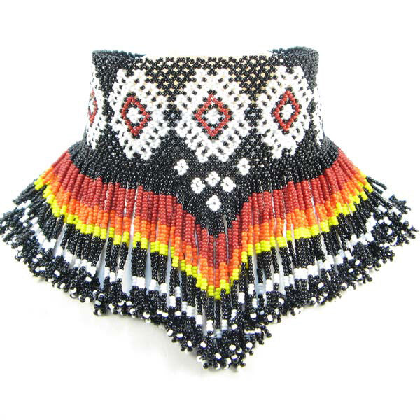 Black Fire Pattern Beaded Bib Necklace Medicine Man'S Eye Beadwork WCS