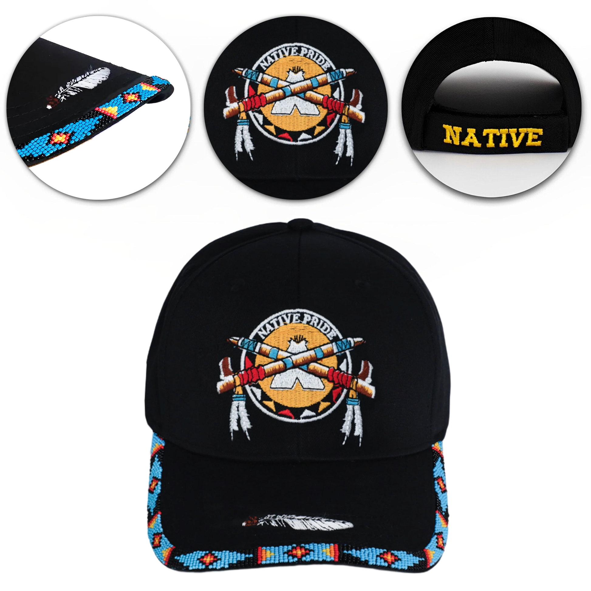 SALE 50% OFF - Native Pride Emblem Embroidered Beaded Baseball Cap Patch With Brim Unisex Native American Style