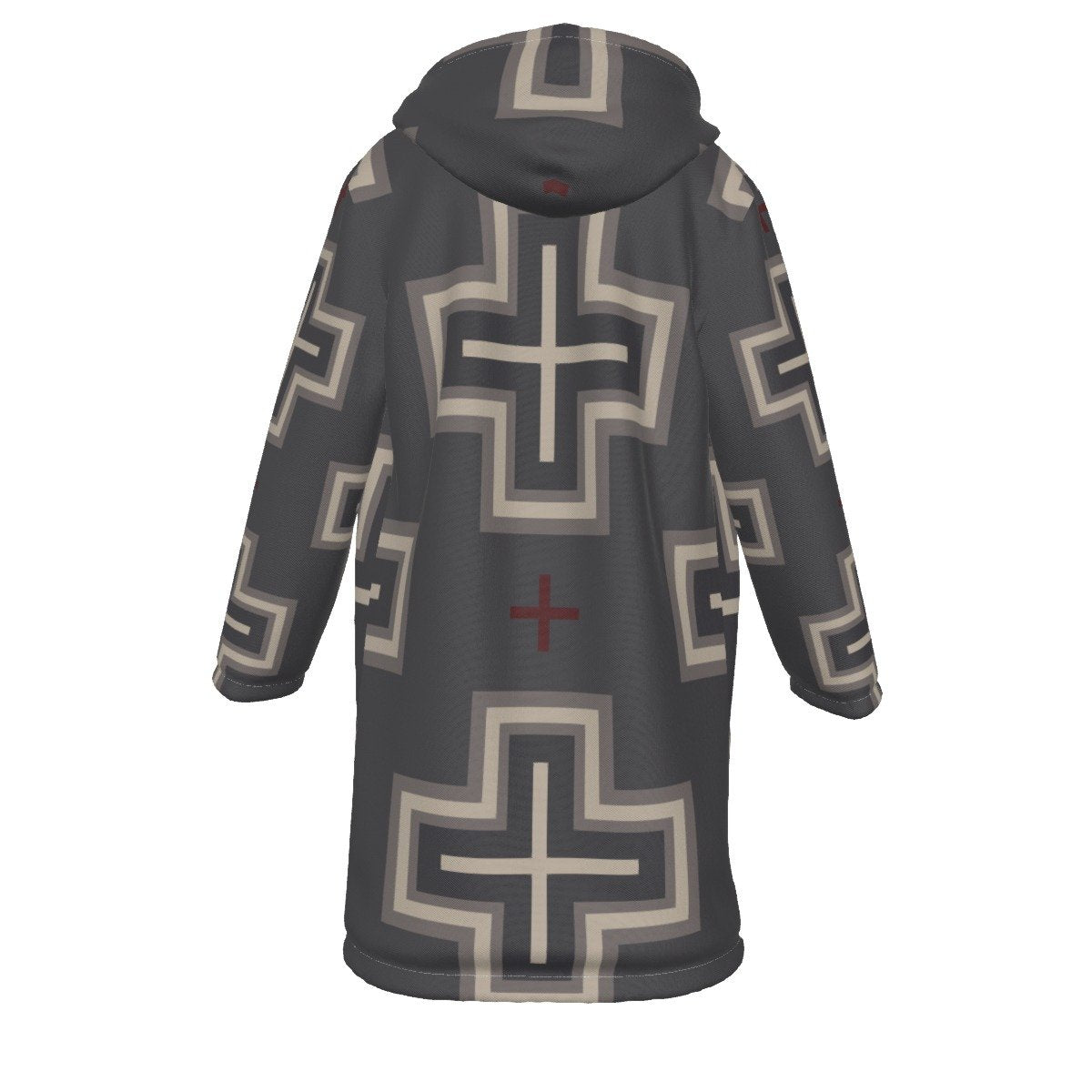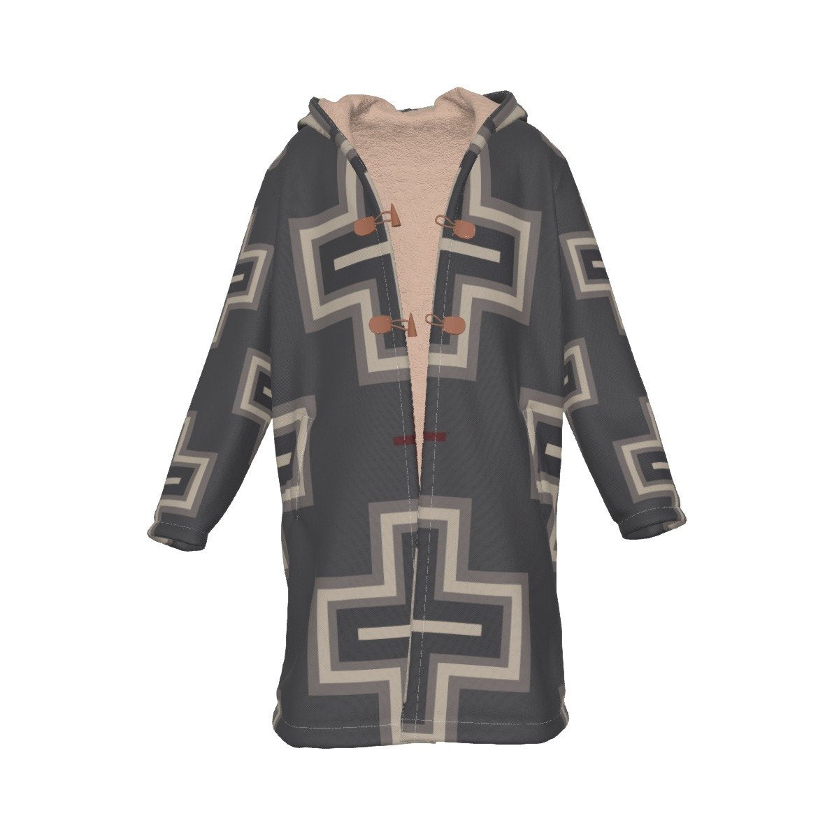 Plus Pattern On Black Background Horn Button Long Fleece Windbreaker WCS