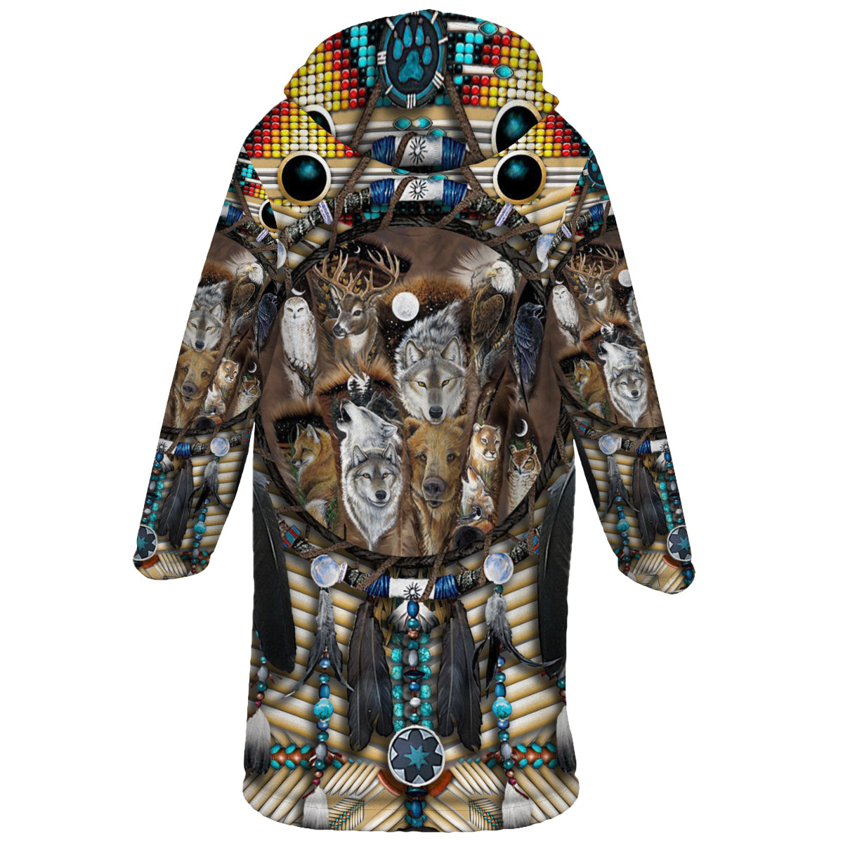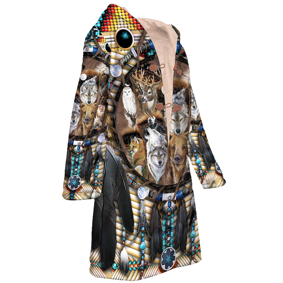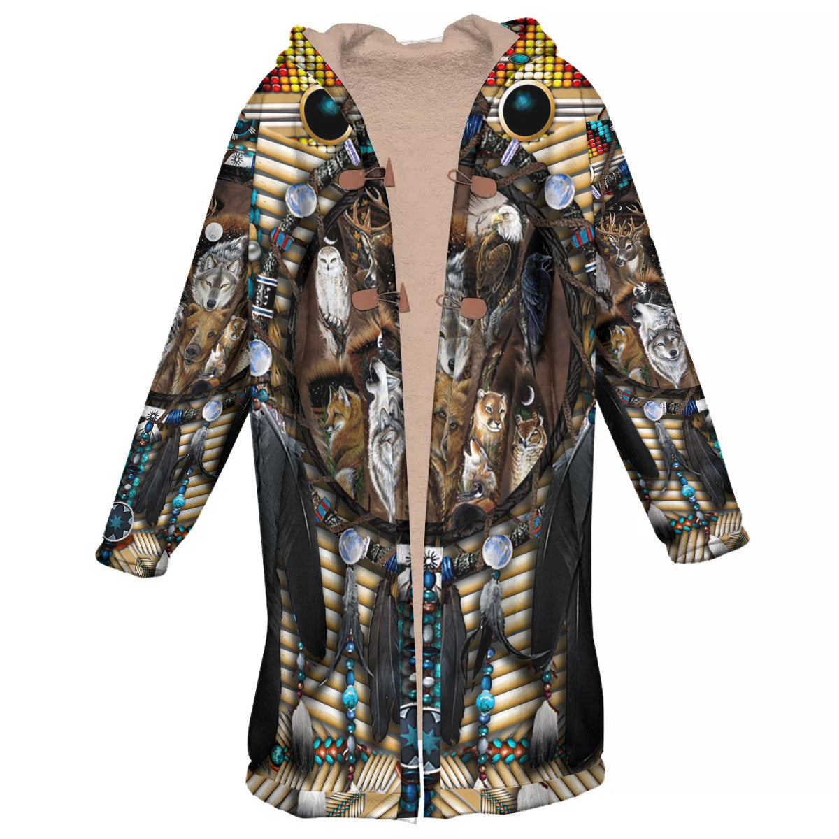 Animal Spirit Dreamcatcher Horn Button Long Fleece Windbreaker WCS