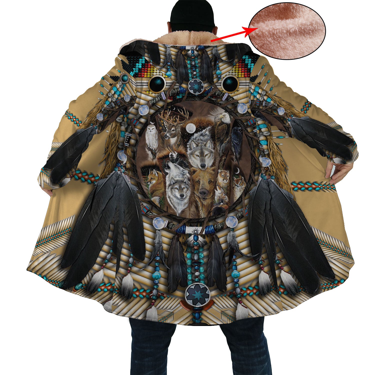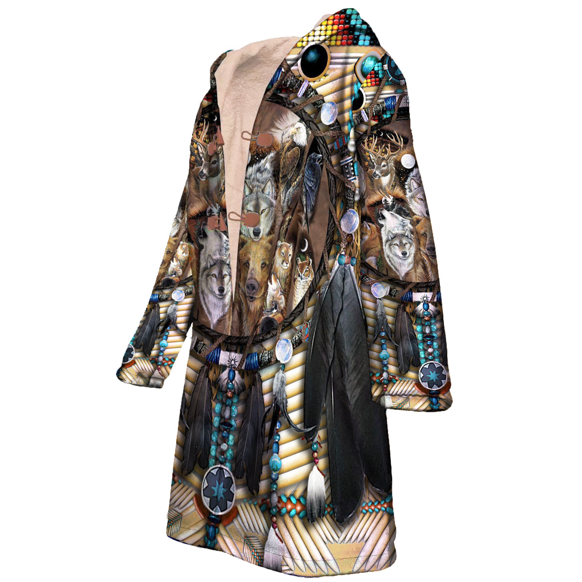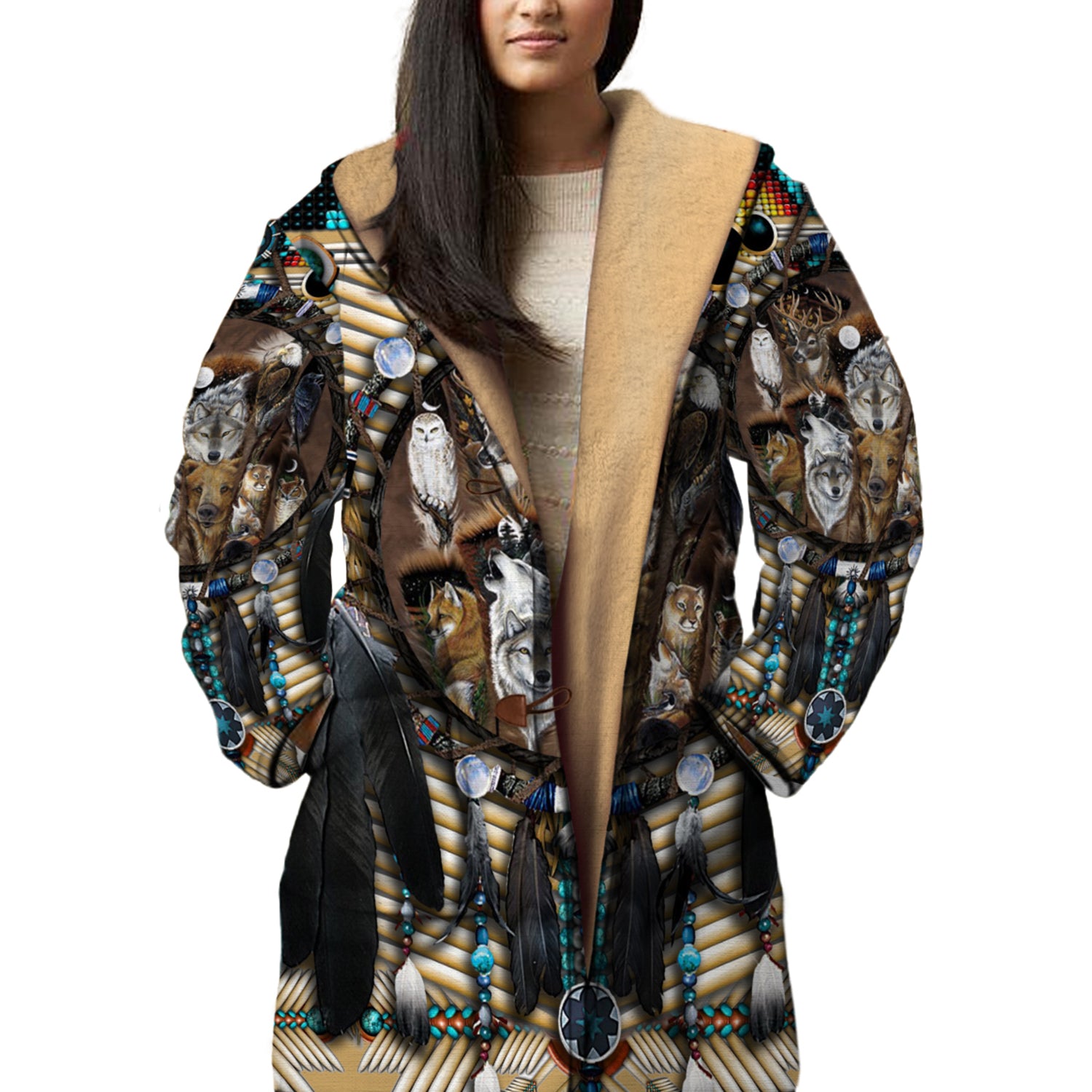 Animal Spirit Dreamcatcher Horn Button Long Fleece Windbreaker WCS