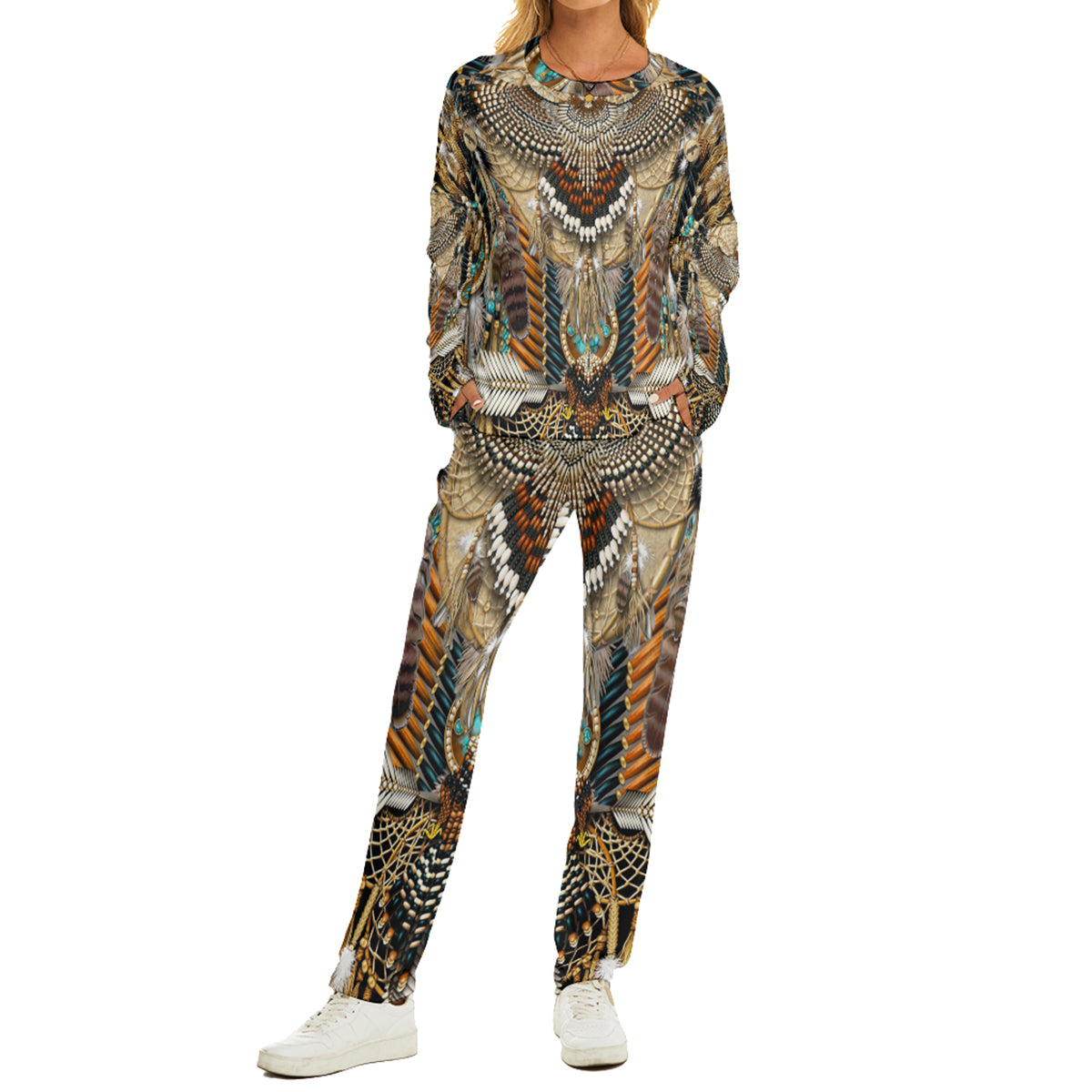 Drop shoulder, long sleeve, crew neck, suits of T-shirt and pants
