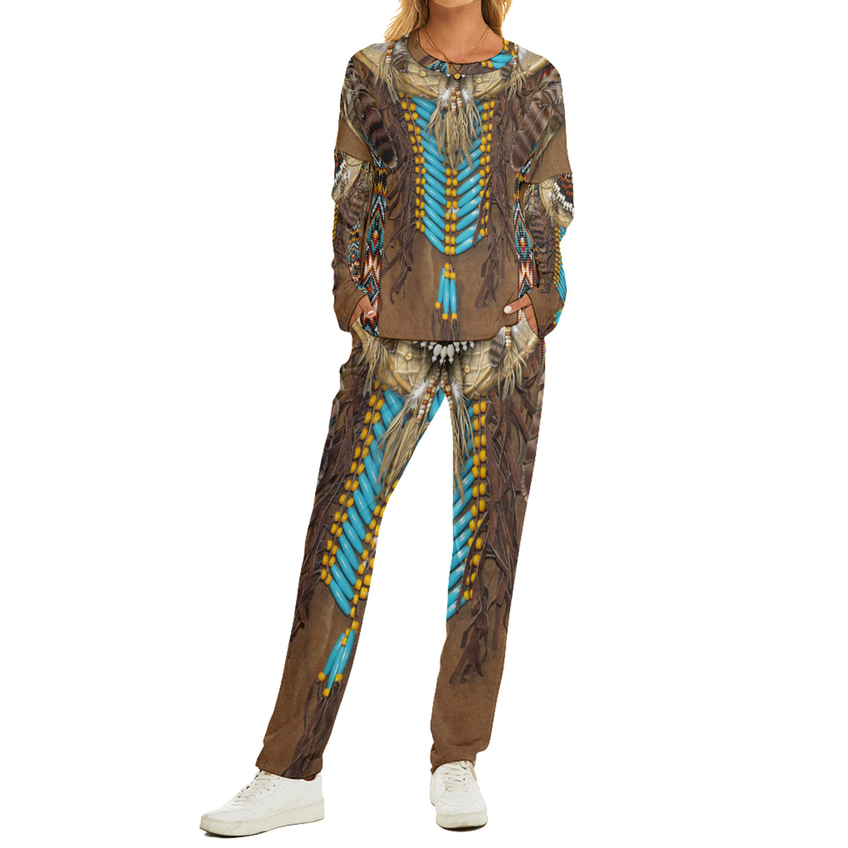 Drop shoulder, long sleeve, crew neck, suits of T-shirt and pants