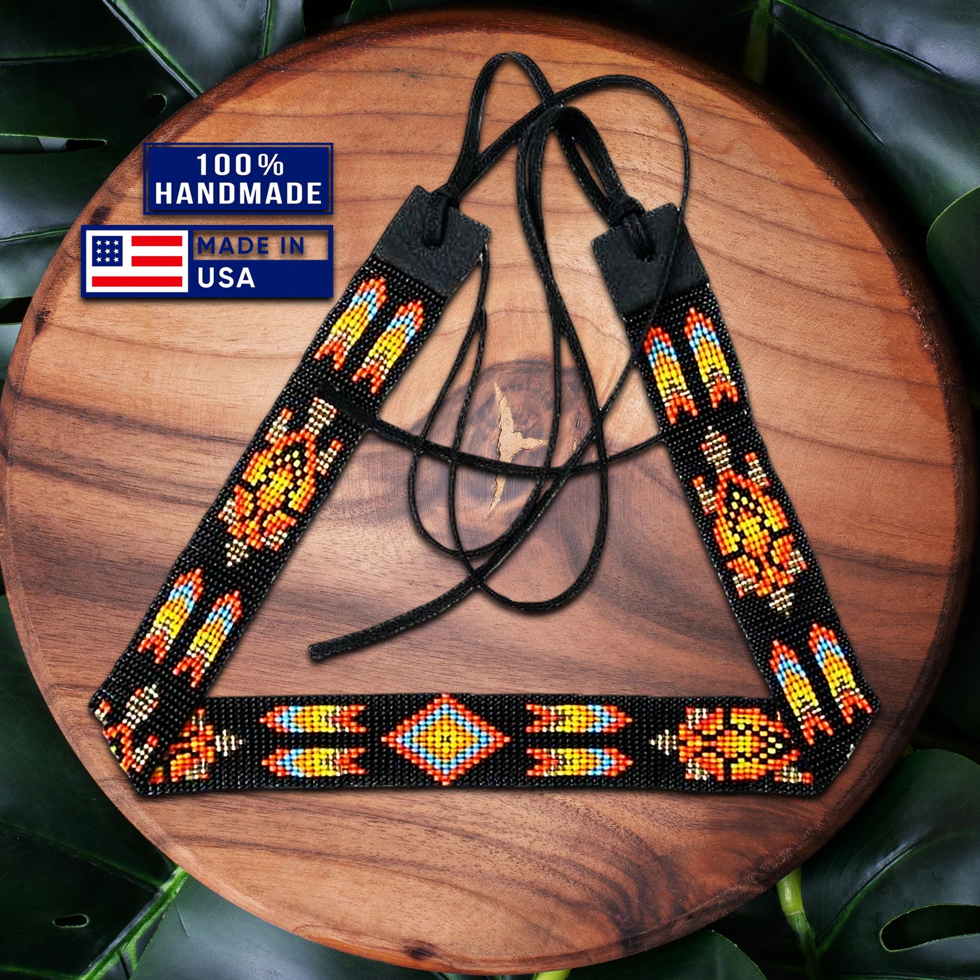 Native American Style Black Fire Seed Beads Turtle Beaded Hatband WCS