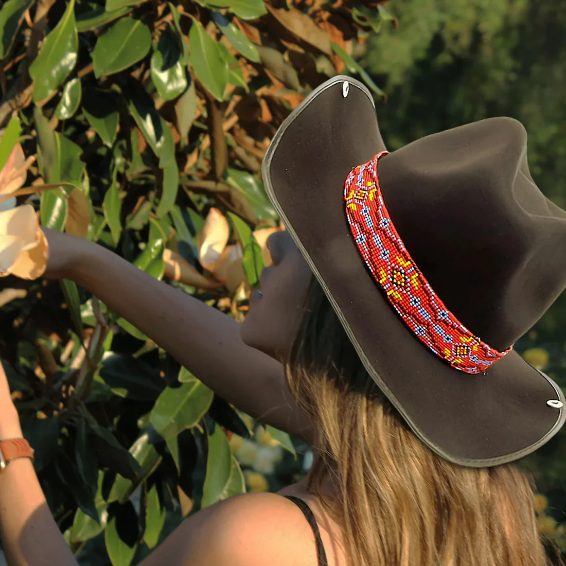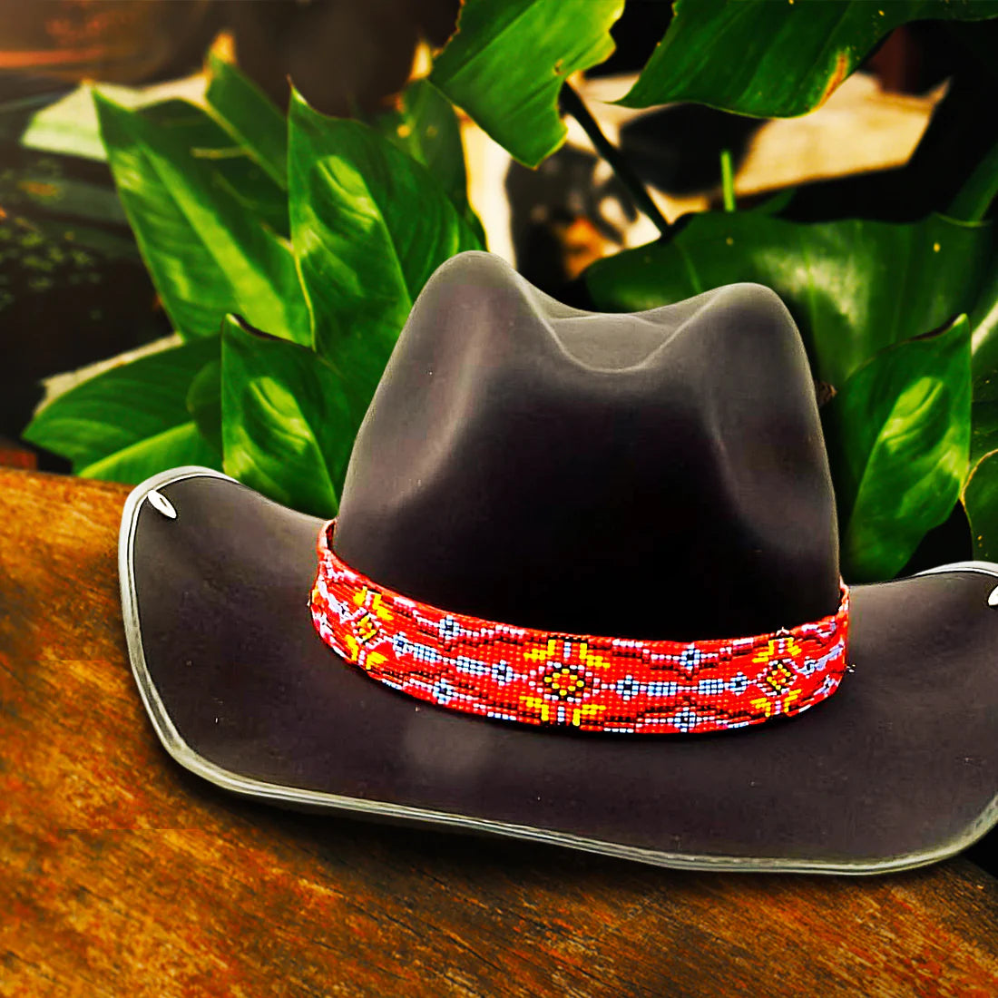 Beaded hatband handmade using small 11/0 Czech seed beads.