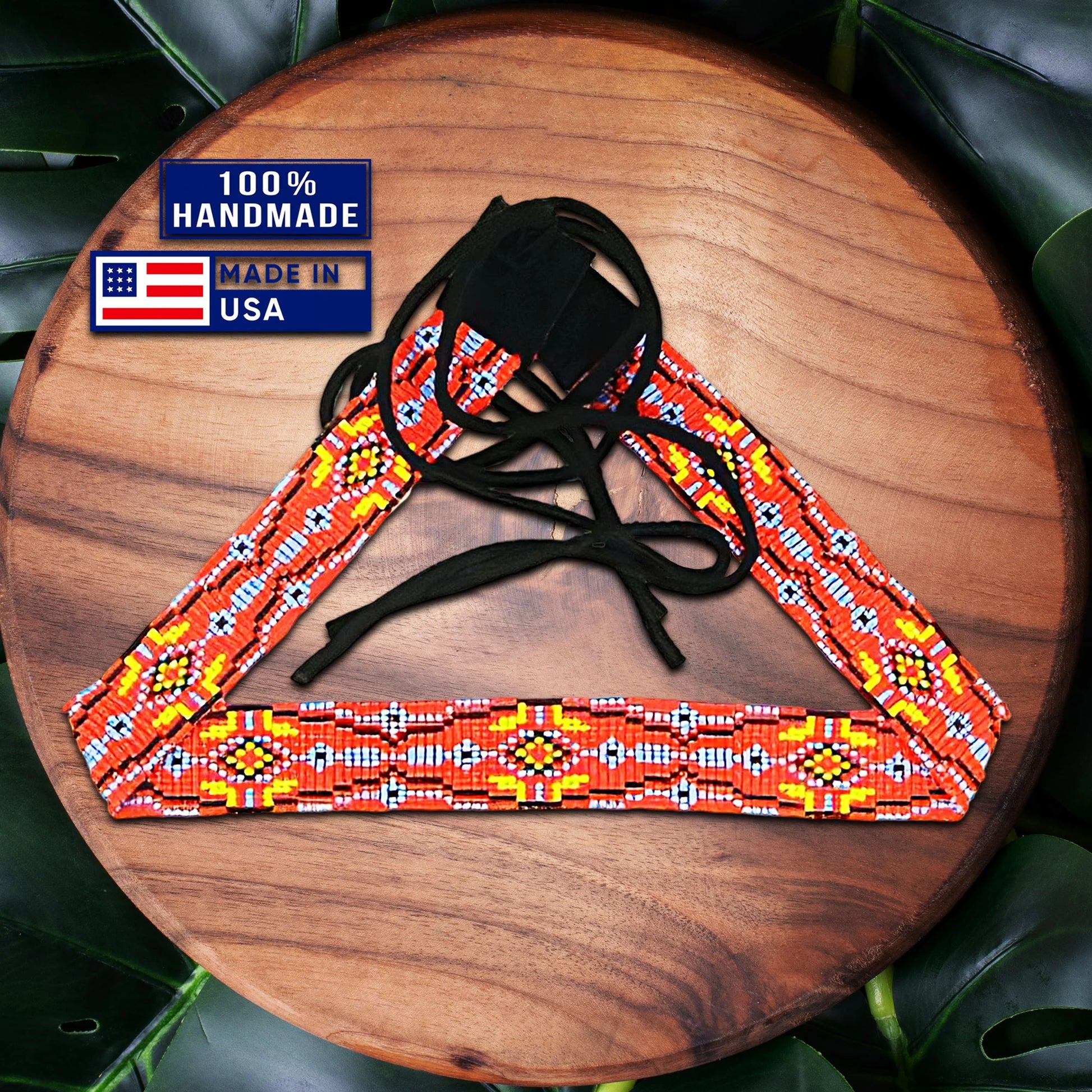 Red Blue Yellow Seed Beaded Cowboy Hat Band Waist Belt WCS