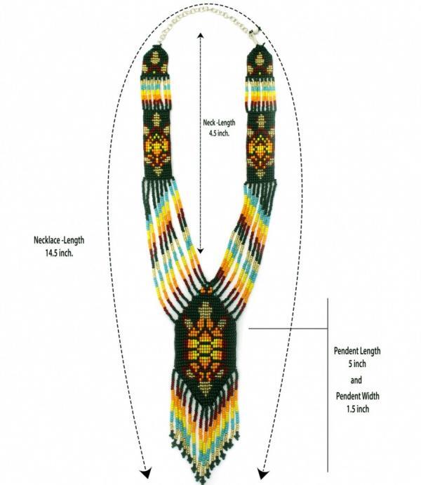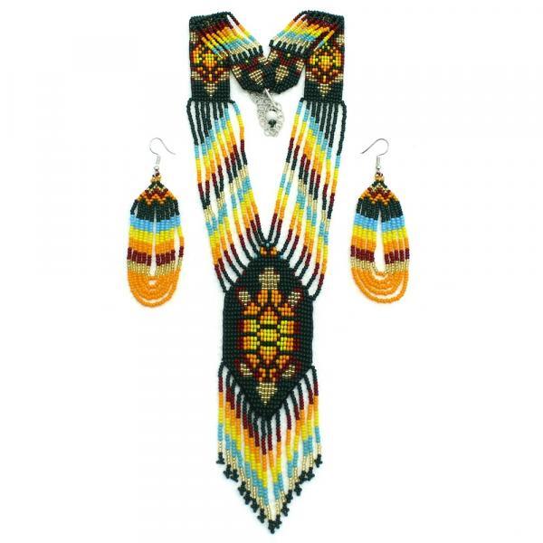 Handmade Beaded Turtle Design Deep Green Orange Necklace Earrings Set WCS