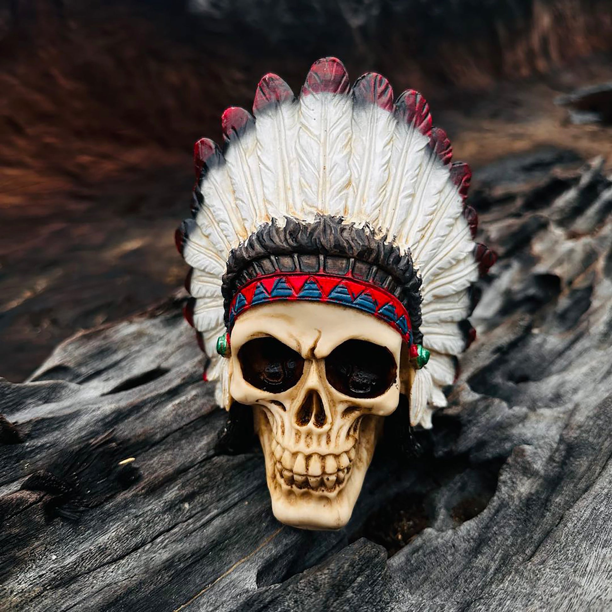 ✧ This Chief Warrior With Roach sculpture is made of designer composite resin, hand painted and polished. Color Tone may vary