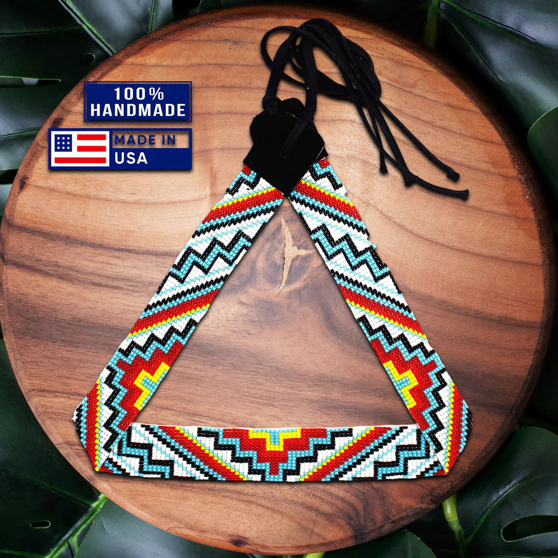 Handmade beaded Geometric White Multi-Colored loom Cowboy style Hatband